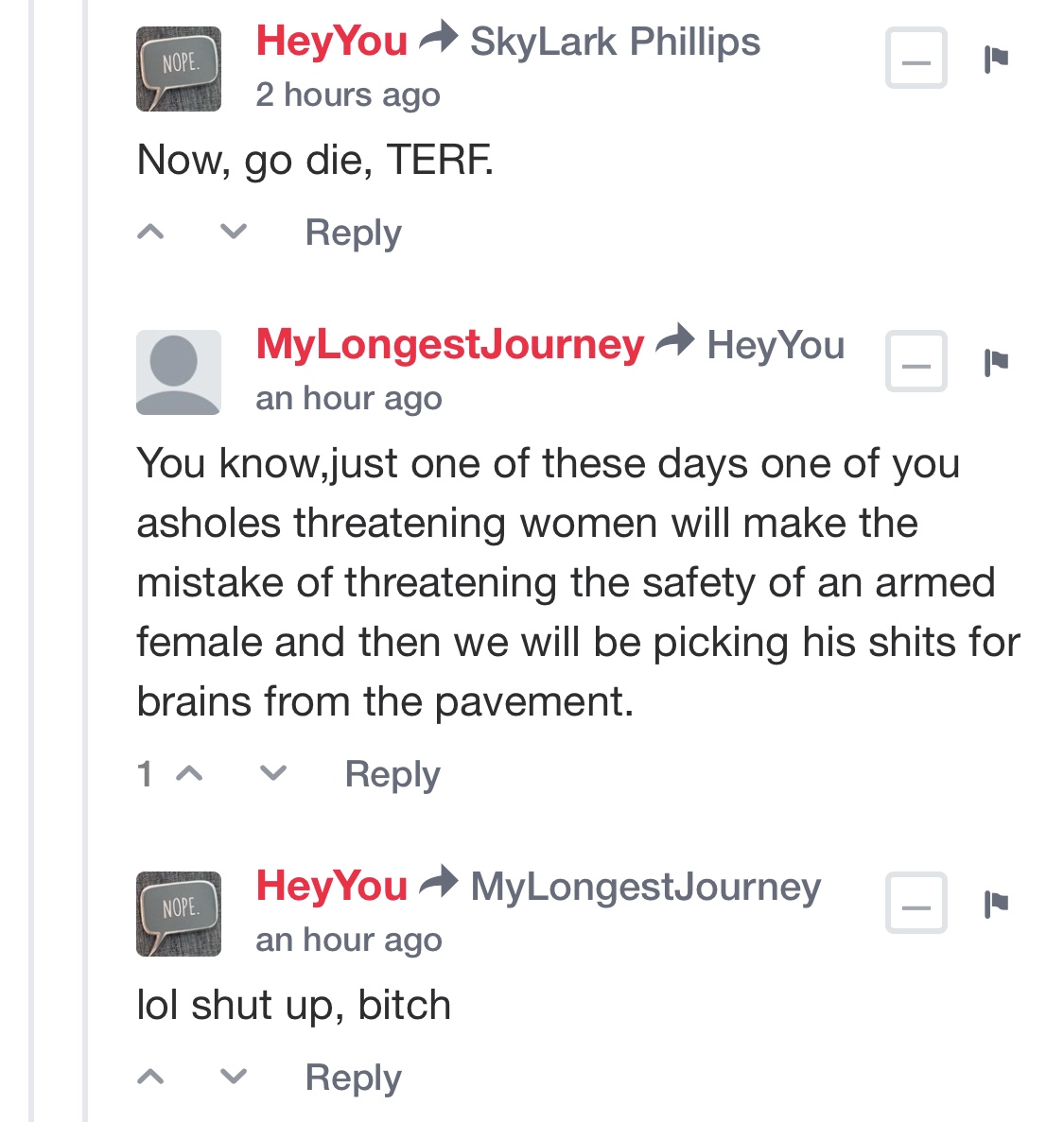 I got no issue with gay or lesbian, each to their own but a majority of trans want to police speech now.