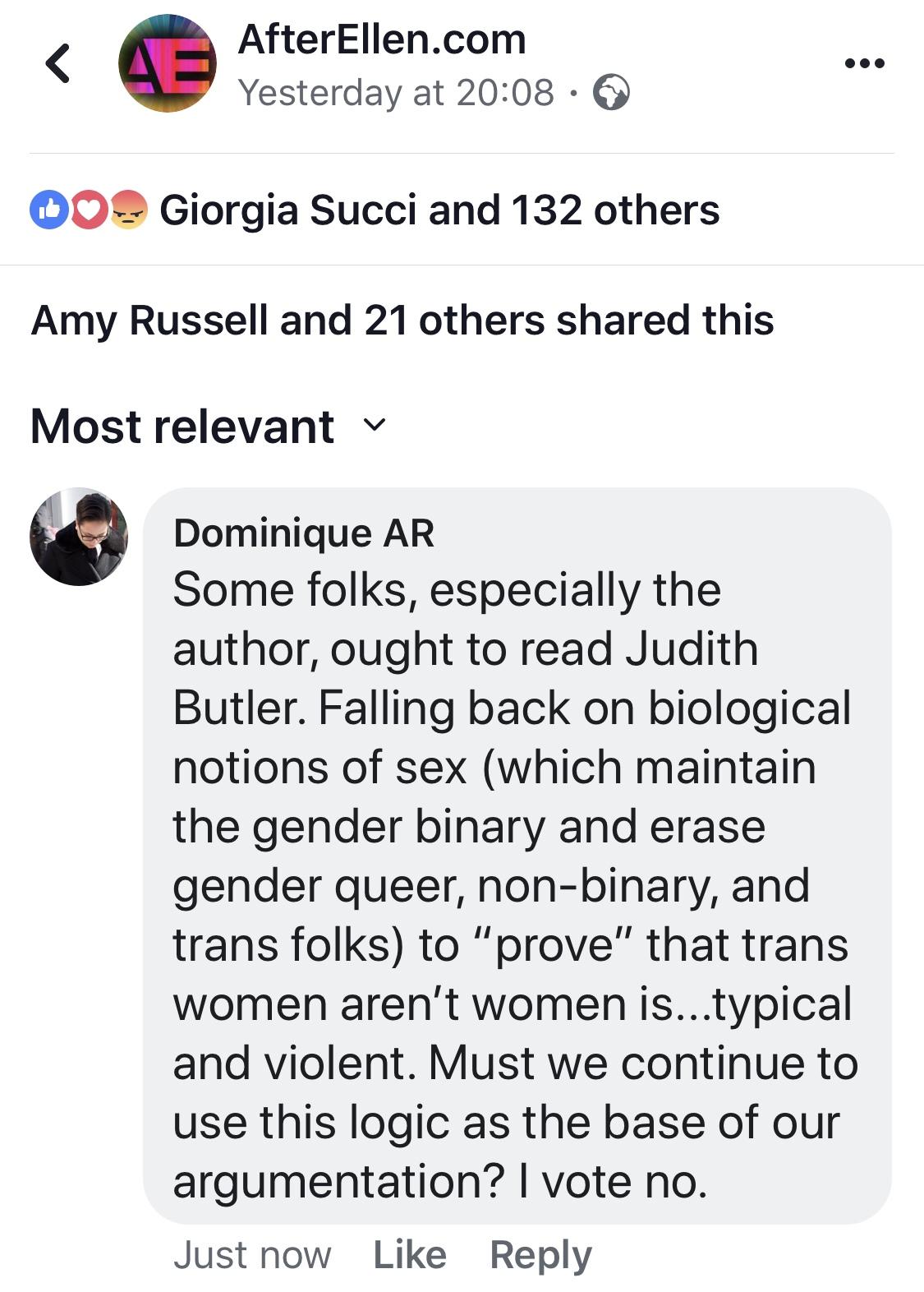 “young lesbians are being told their sexual orientation is bigoted – it’s time trans activists stop pushing ‘girl dick’ on them. Genital ‘preferences’ is bad word usage.”