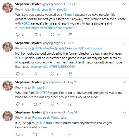 Of course there are many other things their self-serving statement omitted, like how for example homosexual and gender non-conforming minors are being instrumentalised by transgender activists in order to validate their own claim to identity, but I digress. What is properly amazing is how quickly this group reverted to classic male transgender activist behaviour. NO SURPRISES THERE.